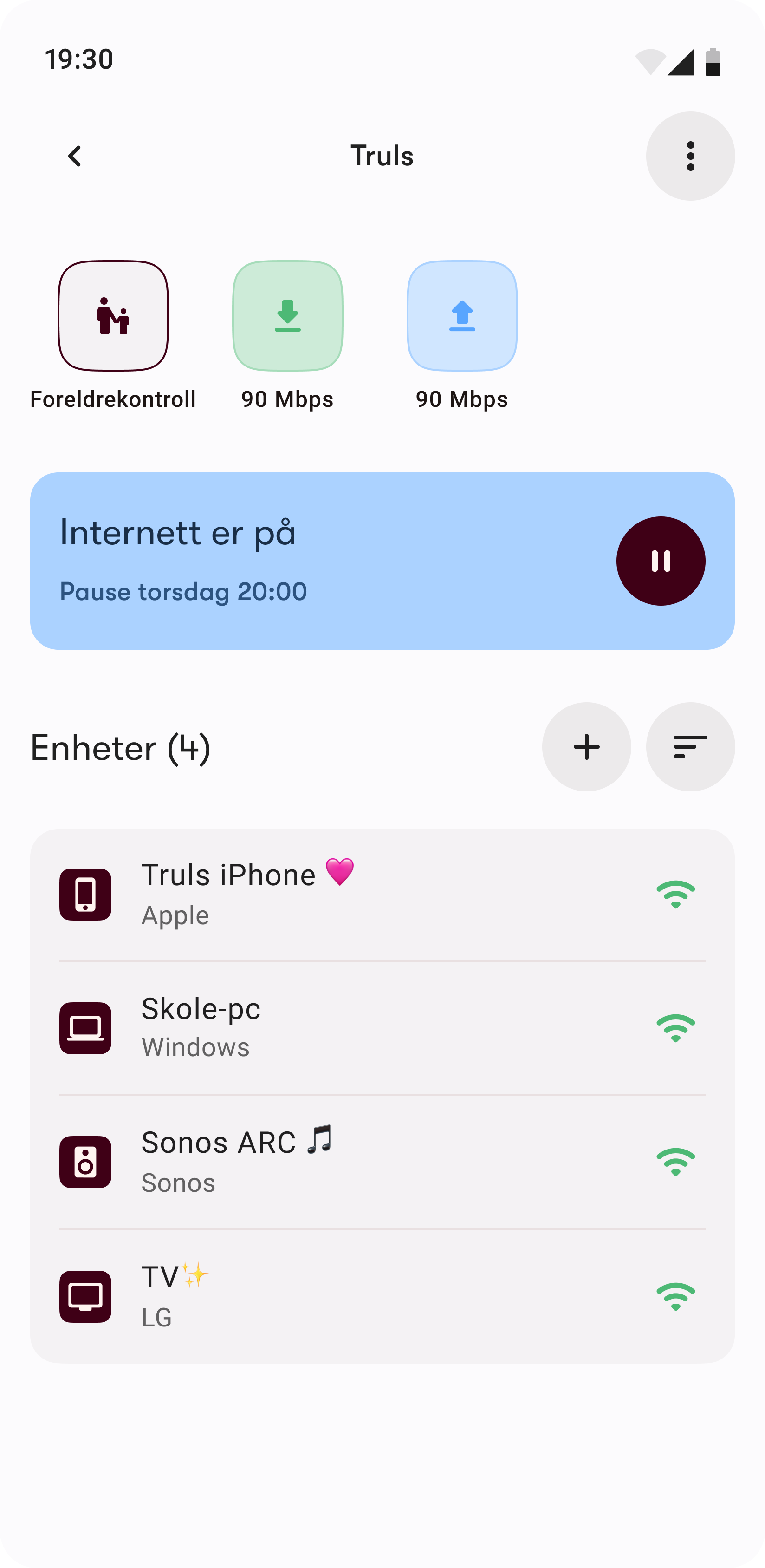 Her kan du sette opp hvilke enheter som skal ha tilgang til nett når, og dermed unngå at gaming forstyrrer leksetiden, slippe at videoscrolling fører til dårlig middagsstemning, og sikre at gaming ikke blir prioritert over søvn.